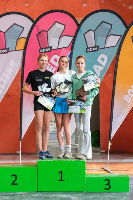 Damit ist Sophie Deutsche Jugendmeisterin 2025 in der U15 – im Bouldern, Lead und Speed.