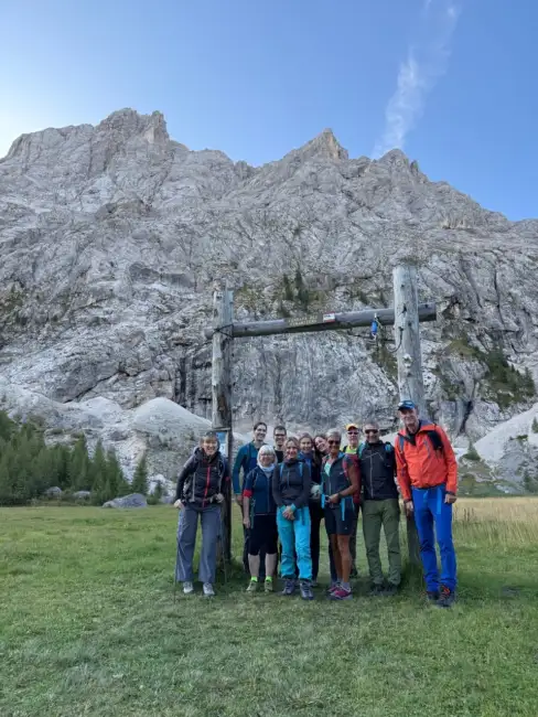 Langkofel, Sellastock, Pordoi, Marmolada, Collac. An diesen Bergen befanden sich auch die Klettersteige und Gratwanderungen, die die Gruppe meisterte. Besonders beeindruckend war die Tour am letzten Tag: Ferrata delle trincee, eine Gratkletterei, bei der man an ehemaligen Schützengräben und Tunnels des Ersten Weltkrieges vorbei kommt.